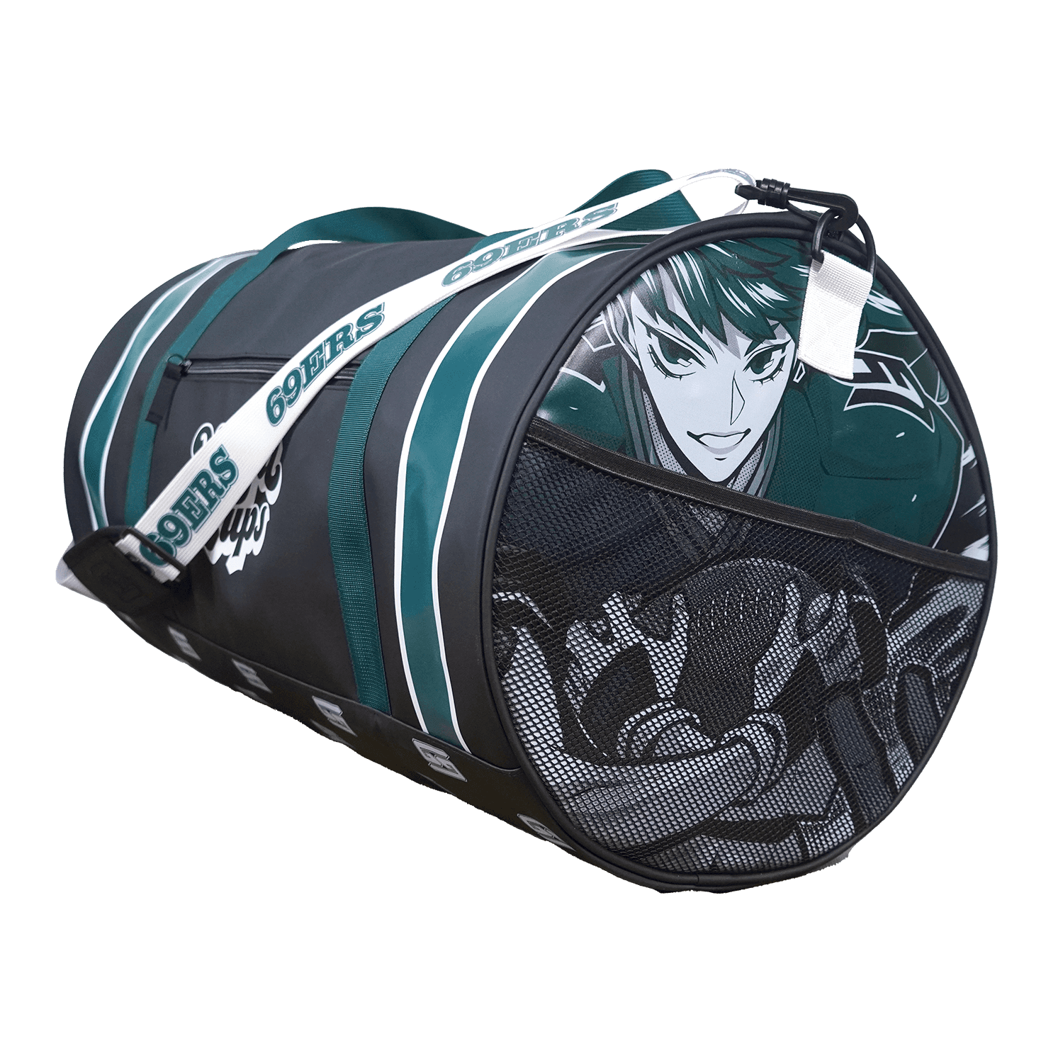 The 69ers drop leans into traditional sports-inspired apparel with a playful twist that fits the brand. Instead of going with a standard hoodie, I designed a shortstop-style hoodie with mesh lining in the hood, striped sleeves with accent piping, and chest embroidery to give it a more authentic athletic feel. The sweatpants follow that same direction, featuring mesh stripes down the legs, accent ankle cuffs, and back pocket embroidery to keep the detailing consistent throughout the set. I also created a GS logo as a parody of the NFL mark to really sell the sports theme. To complete the capsule, I designed a gym duffle bag with plastisol-printed details, a removable shoulder strap, and internal pocket storage so the entire drop feels cohesive from head to toe.